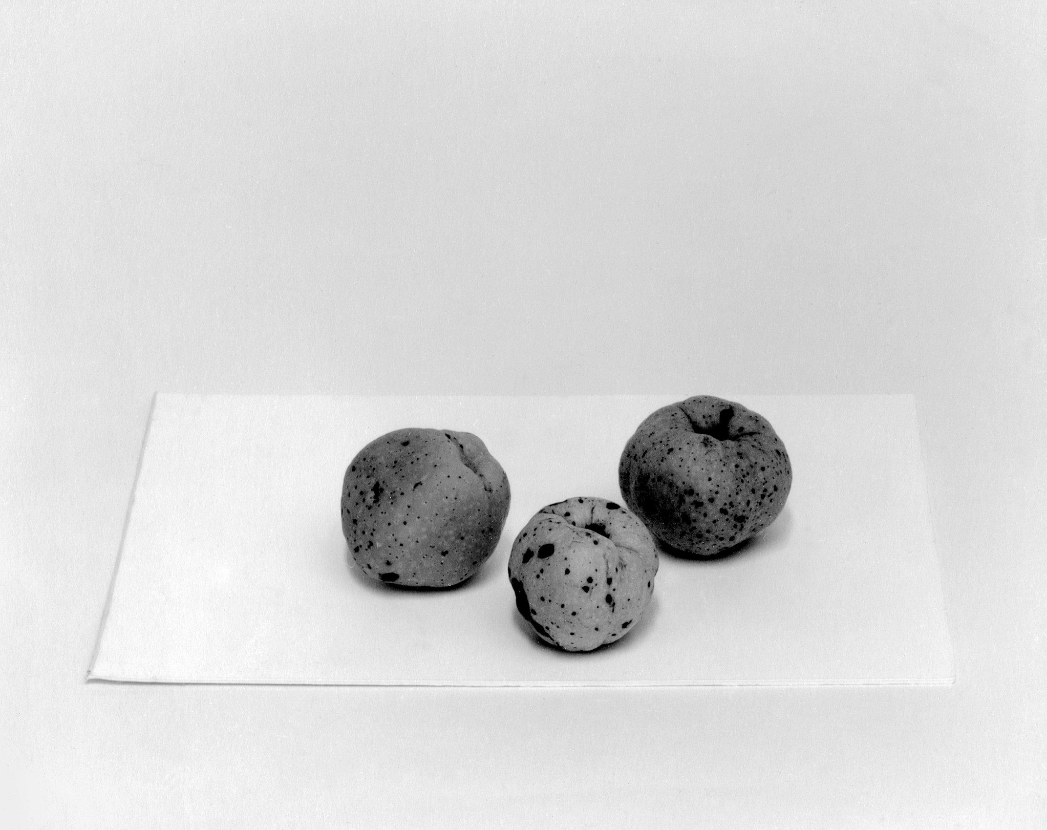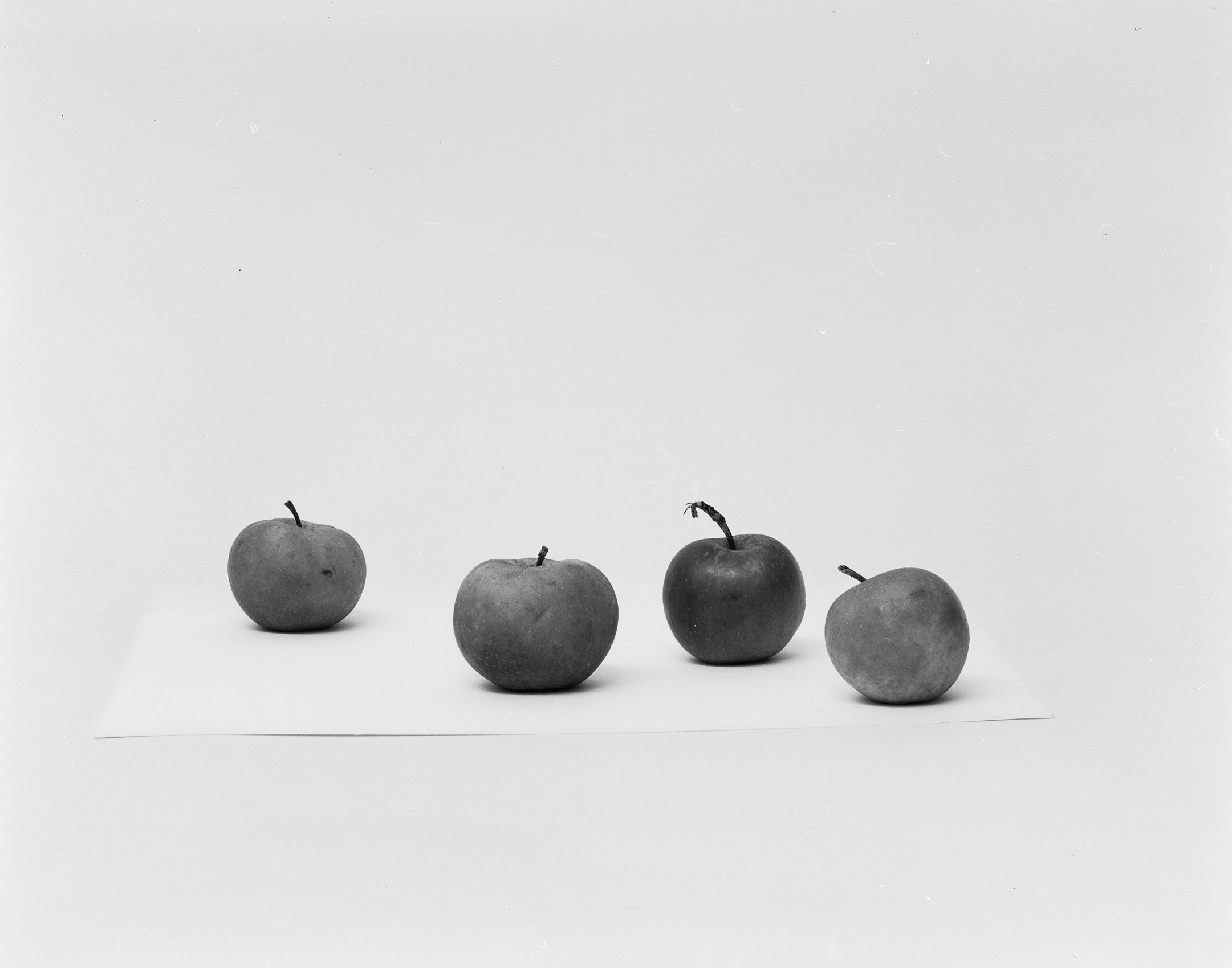 Je mets la table pour manger. Tout est normal. En cours de repas, je dépose une pomme dans ce décor, pour la photographier. Les doutes et les tourments commencent. On suspecte l’artifice! Les objets auraient dû être déposés sans savoir qu’ils seraient transfigurés par un objectif. Alors, jouons franc. Je m’isole dans un coin de mon atelier. Je place un papier de fond, mais pas n’importe lequel. Je dépose une pomme, mais pas n’importe laquelle. J’amène, si nécessaire un éclairage. C’est ce qu’on appelle une Nature Morte. Vie Tranquille, ou Vie Coite, ce serait tellement mieux.